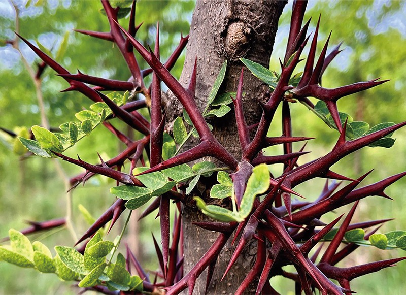皂角樹多年生枝,以及樹干生長棘刺,棘刺多數分枝,刺粗壯,通常分枝即刺上長刺。皂角刺入藥可活血并治瘡癬,消腫排膿,搜風拔毒等等。藥用價值很高。